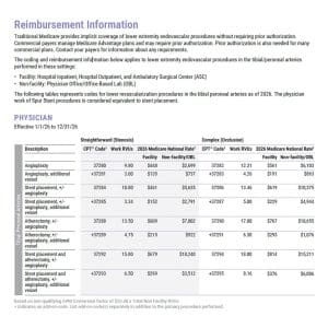 The coding and reimbursement information included in the guide applies to lower extremity endovascular procedures in the tibial/peroneal arteries using the Spur Stent and performed in these settings: